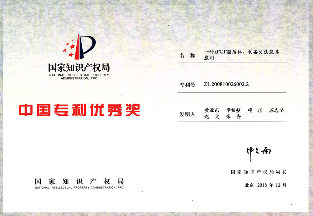 國家知識產(chǎn)權(quán)局中國專利優(yōu)秀獎-一種aFGF脂質(zhì)體、制備方法及其應(yīng)用