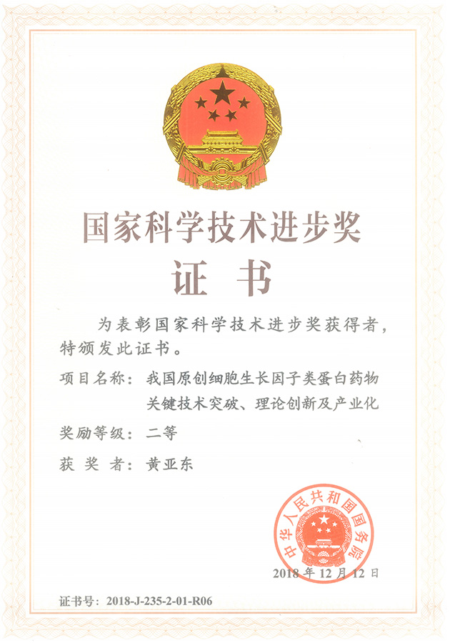 國家科學(xué)技術(shù)進步獎二等獎-我國原創(chuàng)細胞生長因子類蛋白藥物關(guān)鍵技術(shù)突破、理論創(chuàng)新及產(chǎn)業(yè)化
