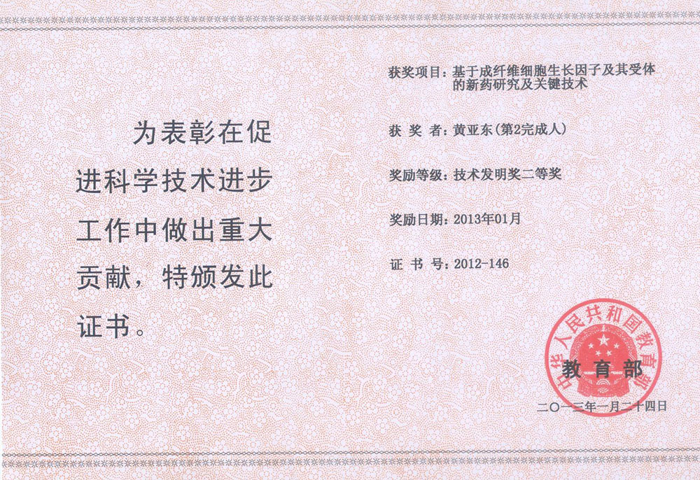 教育部技術(shù)發(fā)明二等獎-基于成纖維細胞生長因子及其受體的新藥研究及關(guān)鍵技術(shù)