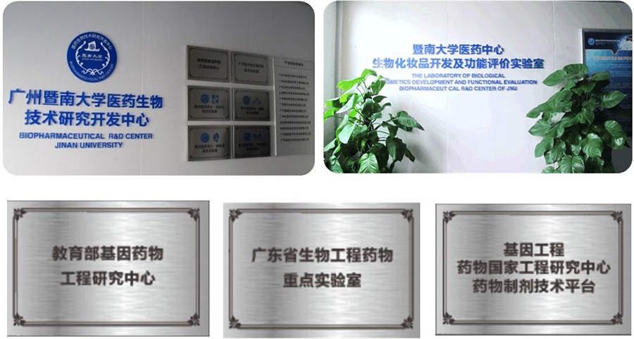 Guangzhou Biopharmaceutical R&D Center of JNU, established in 1999, is a wholly-owned institutional unit of Jinan University, specializing in the research of genetic engineering drugs, biological materials, and bioactive peptide raw materials and conversion of the achievements. We have equipped with molecular biology laboratory, pilot scale test laboratory, pharmaceutical preparation laboratory, biological cosmetics laboratory and efficacy testing laboratory. We can provide one-stop service from R & D to cosmetic efficacy tests.